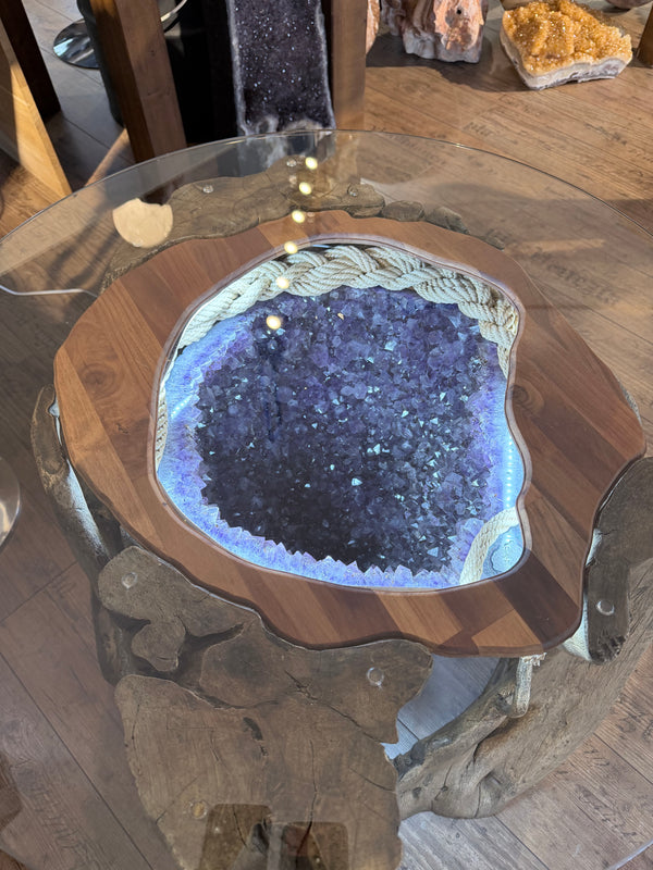 Mit Liebe geformt und von der natürlichen Struktur des Kristalls geleitet, bringt dieser Bartisch Eleganz und Charakter in jeden Raum.