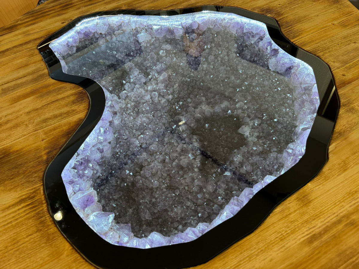 An einem Tisch erlebt man so viele schöne Momente und an einem Tisch werden wichtige Entscheidungen getroffen. Daher sollte auch dein Tisch ein besonderer Tisch sein, der zu dir passt. Durch die perfekt eingearbeiteten Kristalle und umrahmt von natürlichem Holz wird dieser Tisch nicht nur zu einem Möbelstück, sondern zu einem Erlebnis. Er ist ein wahres Meisterstück. In dem Moment, in dem die Kristalle zu leuchten beginnen, entsteht eine atemberaubende Stimmung. Sie vermitteln Ruhe, Besonnenheit und Freude. Kristalle wirken sehr positiv auf unsere Stimmung, und die perfekte Einarbeitung in den handgefertigten Tisch macht jeden unserer Tische zum Unikat.