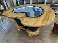 Mit sorgfältig eingearbeiteten Kristallen, umrahmt von natürlichem Holz, wird dieses Stück mehr als nur ein Möbel-es wird zu einem Erlebnis.